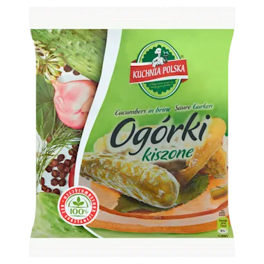 zure augurken, opgietvloeistof,(water, zout, knoflook, dille).