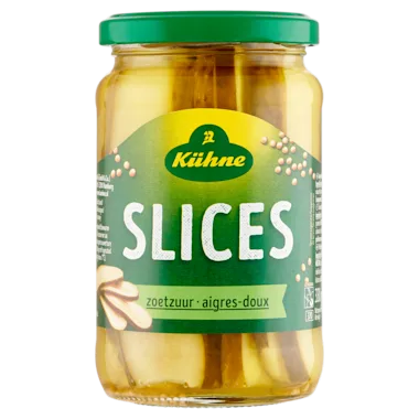 Ingrediënten: Augurken, natuurazijn, suiker, MOSTERDZAAD, zout, natuurlijk aroma, kleurstof: riboflavine