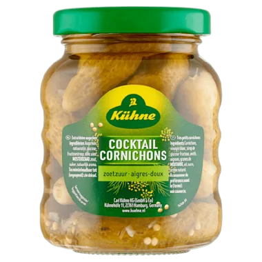 Ingrediënten: Augurken, natuurazijn, glucose- fructosestroop, dille, uien, MOSTERDZAAD, zout, suiker, natuurlijk aroma