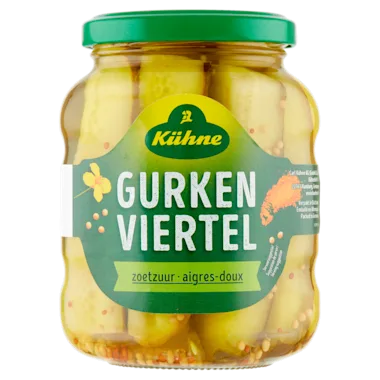 Ingrediënten: Augurken, natuurazijn, suiker, zout, MOSTERDZAAD, natuurlijk kurkuma aroma, kleurstof: riboflavine