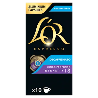 Lungo Profondo Decaf heeft een sublieme, harmonieuze en complexe koffie blend, met zoete en geroosterde tonen en subtiele aroma's van zoethout en karamel. Cafeïnevrij.