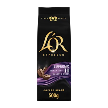 De L'OR Espresso Supremo is een gebalanceerde koffie met eikenachtige, nootachtige aroma's en diepe houtachtige smaken. Ervaar de smaak van rijp donker fruit en vleugjes cacao in de afdronk.