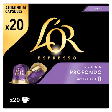 Lungo Profondo is een medium roast op het randje van donker. De diepere aroma's van chocolade en noten worden opgevolgd door licht geroosterde, warme smaken met een contrasterende zachte fruitigheid.