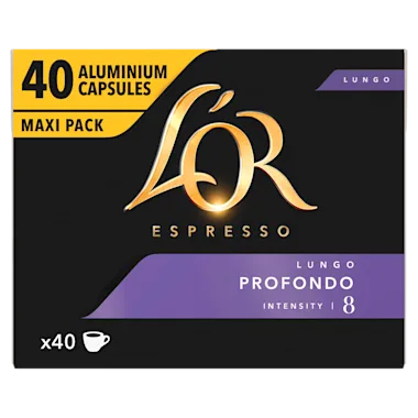 Lungo Profondo is een medium roast op het randje van donker. De diepere aroma's van chocolade en noten worden opgevolgd door licht geroosterde, warme smaken met een contrasterende zachte fruitigheid.