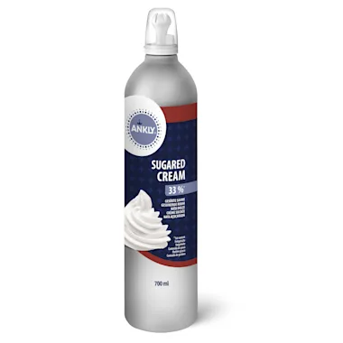 Room. Suiker 10%, drijfgassen: E941, E942, emulgator: E471, stabilisatoren: E407