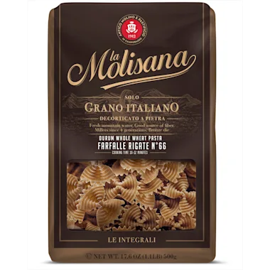 Ingrediënten: Volkoren deegwaren van harde TARWE. Kan sporen van SOJA en MOSTERD bevatten.
