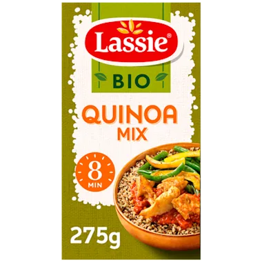 2. Meng de quinoa mix met water (per 75 g quinoa mix 150 ml water) in een kleine (steel)pan en breng al roerend aan de kook. Reken 75 g quinoa mix per persoon.