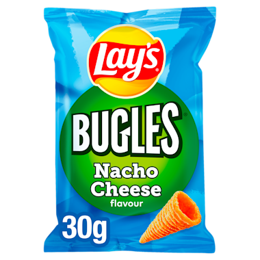 Geniet van het lekkere en knapperige maïshoorntje van Lay's® Bugles. Dankzij het unieke vormpje kan je Lay's® Bugles combineren met je favoriete dip. Deze chipjes hebben een heerlijke volle nacho cheese smaak.