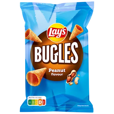 Geniet van het lekkere en knapperige maïshoorntje van Lay's® Bugles met een pindasmaak