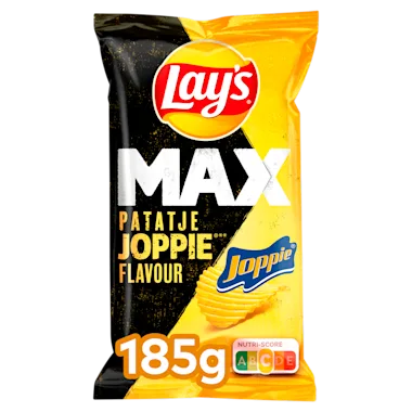 Lay's MAX Patatje Joppie zijn heerlijke geribbelde aardappel chips met krachtige smaak van Patatje Joppie en zorgen in combinatie met de ribbels voor een harde kraak! MAX crunch, MAX taste!