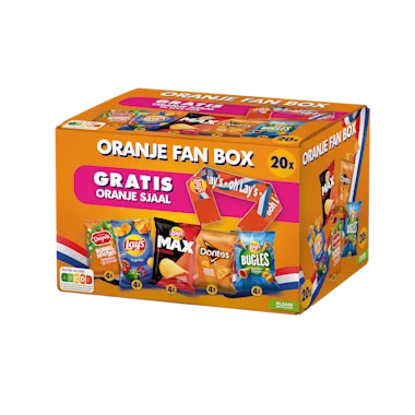 Geniet samen met je familie en vrienden van jullie favoriete Lay's® & Doritos® & Duyvis® snacks, speciaal geselecteerd voor deze Oranje Fan Box. De kleine zakjes zijn handig om uit te delen en lekker als tussendoortje, op elke moment van de dag. Nu verkrijgbaar in een handige kartonnen box. Eenvoudig mee te nemen en makkelijk op te bergen. Ontdek alle boxen en vind jouw favoriet. GRATIS ORANJE SJAAL.