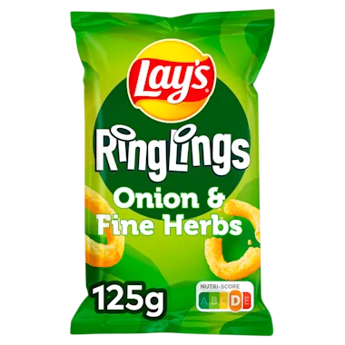 Ingrediënten: maïsgries, koolzaadolie, ui- fijne kruidensmaak [aroma (bevat SELDERIJ, peterselie, uienpoeder), MELKPOEDER, zout, smaakversterker (mononatrium glutamaat), dextrose], suiker, zout. Kan soja en tarwe (gluten) bevatten.