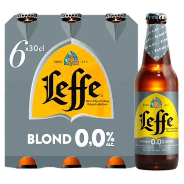Leffe Blond 0.0 is het eerste alcoholvrije abdijbier ter wereld en volgens velen vrijwel niet te onderscheiden van reguliere bieren met alcohol.