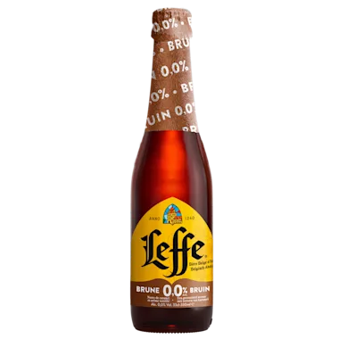 Leffe Bruin 0.0 is een abdijbier met een diepe, herfstbruine kleur en een volle, lichtzoete smaak, beiden te danken aan de donkergebrande mout.