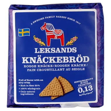 "Leksands knäckebröd is heerlijk als ontbijt, lunch of tussendoortje met verschillende soorten beleg. Het is rijk aan vezels, mineralen en vitaminen. Gemaakt met pure ingrediënten van hoge kwaliteit en 100% volkoren.