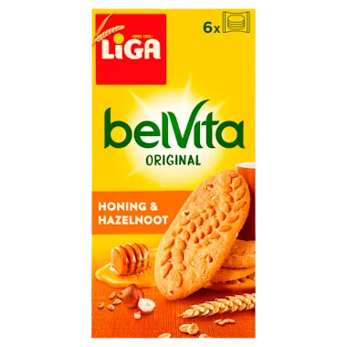 Biscuits met granen (63,2 %), met chocoladestukjes, hazelnoten en honing, met hazelnootsmaak, en verrijkt met calcium, magnesium en ijzer.