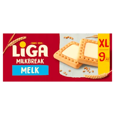 LiGA Milkbreak is een lekkere tarwebiscuit met melkvulling.