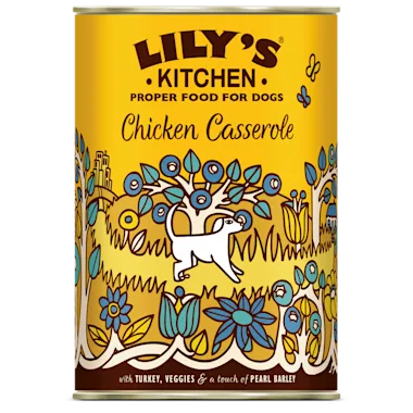Een compleet natvoer voor honden, gemaakt met verse kip en vers bereide kalkoen, plus bruine rijst en groenten en fruit, zoals appels, broccoli, erwten en bosbessen, en ook nog met heerlijke aromatische kruiden, goed voor de gezondheid.