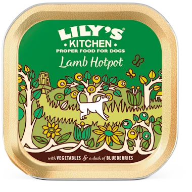 Lily's Kitchen Stoofpotje met lam is een smakelijk gerecht hondenvoer gemaakt met vers lamsvlees, aardappelen en veel groenten en fruit, waaronder pompoen, broccoli en bosbessen. Jouw hond zal kwispelen van geluk als hij dit natvoer eet.