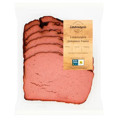 Ingrediënten: 53% varkensvlees°, 34% varkenslever°, water, ui, glutenvrij TARWEzetmeel, zout, specerijen, voedingszuur: E262/E300/E326, dextrose, zuurteregelaar: E575, suiker, gehydrolyseerd plantaardig eiwit (SOJA, maïs, koolzaad), antioxidant: E301, gedroogde pastinaak, aroma, stabilisator: E450/E451/E452, kleurstof: E120/E150a, zonnebloemolie, natuurlijk aroma, conserveermiddel: E250, varkenscollageen.