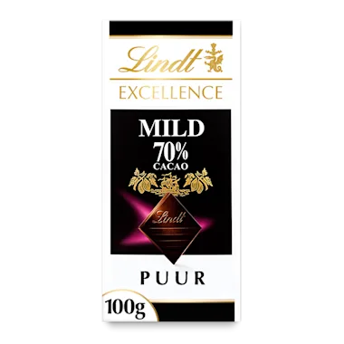 Mild 70% cocoa. Lindt & Sprügli maitre chocolatier suisse depuis 1845. Quality Guarantee Chocoladefabriken Lindt & Sprüngli ag Kilchberg/Switzerland. Manufactured in Germany by: Lindt & Sprüngli GMBH DE-52072 Aachen. Cocoa Farming program.