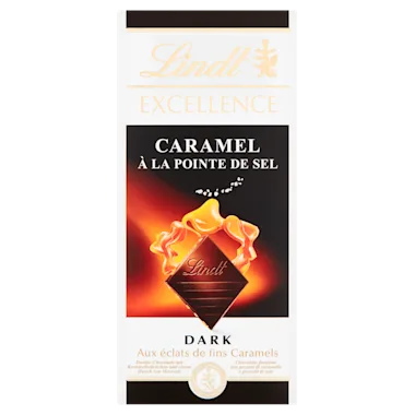 Ingrediënten: suiker, cacaomassa, stukjes, karamel (suiker, LACTOSE, watervrij MELKvet, magere MELKpoeder, emulgator (koolzaad lecithine), aroma) 6%, karamelsuiker (suiker, cacaoboter), 6% cacaoboter, watervrij MELKvet, emulgator (SOJAlecithine), Fleur de sel (zout), 0,3%, aroma's. Kan SESAMZAAD en NOTEN bevatten. Donkere chocolade bevat cacao: 47% minimum.