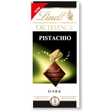 Pure chocolade met stukjes gekarameliseerde pistachenoten met zeezout,