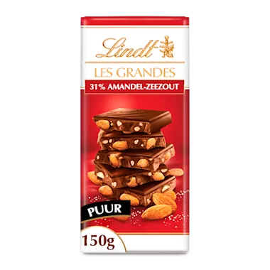 Ingrediënten: suiker, gekarameliseerde AMANDELEN 23% (AMANDELEN 86%, suiker, zout), cacaomassa, AMANDELEN 11,5%, cacaoboter, geconcentreerde MELKboter, emulgator (SOJAlecithine), zeezout (fleur de sel) 0,13%, aroma. Allergenen: Kan MELK, HAZELNOTEN en andere NOTEN bevatten. Cacaobestanddelen %: Donkere chocolade bevat: cacao: minstens 43%.