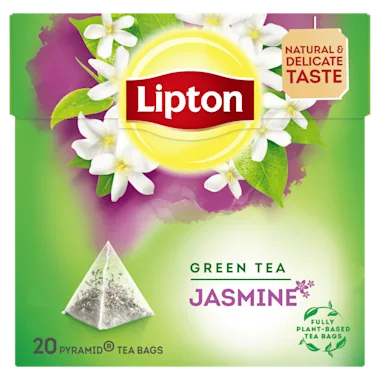 Lipton Jasmine Groene Thee is een groene thee gecombineerd met jasmijnblaadjes, waardoor de thee een heerlijke lichte afdronk heeft. Deze groene thee heeft een kruidige en zachte smaak. Voor een uniek theemoment. Perfect om de dag mee te beginnen, maar ook lekker om te drinken na je work-out of tijdens een momentje voor jezelf. De veelzijdige Lipton-smaken zijn gecombineerd in een piramidevormig zakje dat speciaal is ontwikkeld om de ingrediënten meer ruimte te geven om te trekken. Laat de thee 2 minuten intrekken en pak even jouw theemoment.