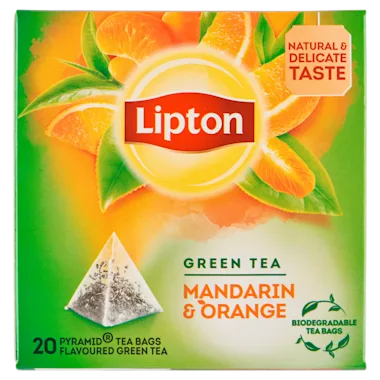 Ingrediënten: Groene thee1, aroma's. mandarijnschill (2,9%), sinaasappelschil (2,9%). 1Rainforest Alliance gecertificeerd.