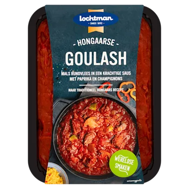 Ingrediënten: rundvlees 49%, paprika, ui, water, champignon, tomaten, kruiden en specerijen (SELDERIJ), gemodificeerd zetmeel (MAïS), plantaardige olie (raapzaad, ui), zout, suiker, groenten (in wisselende samenstelling, prei, WORTEL), kleurstoffen: E150a, E160a, E160c, smaakversterker: E621, gehydroliseerd plantaardig eiwit (SOJA), gemodificeerd zetmeel: E1412, emulgator: E472c, knoflook, TARWEbloem, peper, lactose (MELK), plantaardig eiwit (SOJA), aroma, glucosestroop, aroma (SOJA, TARWE) (smaakversterkers: E631, E627, E621, kleurstof: E150c), citroenzuur, antioxidant: E306, aardappelzetmeel, verdikkingsmiddel: E412, gistextract.E-nummers zijn door de EU goedgekeurde hulpstoffen.