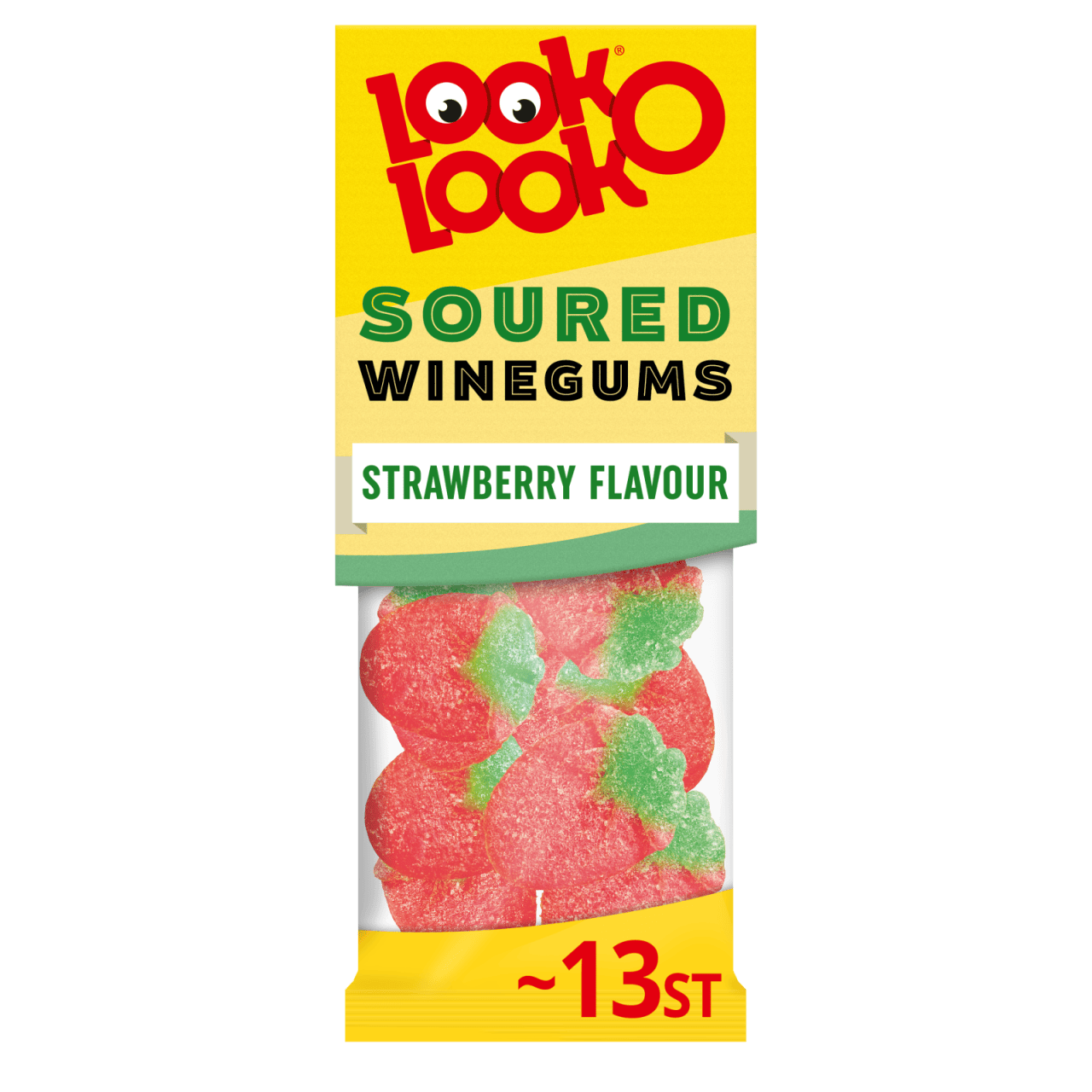 Ingrediënten: suiker, glucosestroop, gemodificeerd zetmeel, TARWEZETMEEL, water, voedingszuren (appelzuur, citroenzuur, melkzuur), concentraten (zwarte wortel, saffloer, spirulina), aroma.