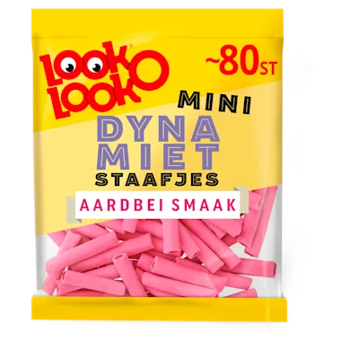 Look-O-Look Dynamietstaafjes zijn snoepstaafjes in de favoriete smaak aardbei. Met een zachte fruitkern voor een verrassende aardbeismaak. Heerlijk om te delen of alleen van te genieten.