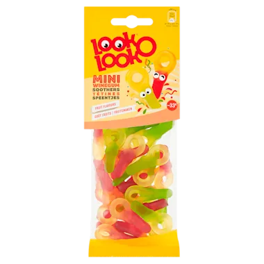 glucosestroop, gemodificeerd zetmeel, suiker, gelatine, voedingszuur (citroenzuur), aroma's, kokosolie, kleurstoffen (anthocyanen, curcumine, karmijn, briljantblauw fcf), glansmiddel (bijenwas).