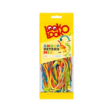 Ingrediënten: glucosestroop, TARWEBLOEM, suiker, glucose-fructose- stroop, voedingszuur (citroenzuur), kokosolie, aroma's, cacaoboter, concentraten (zoete aardappel, zwarte wortel), glansmiddel (carnaubawas), kleurstoffen (curcumine, briljantblauw FCF).