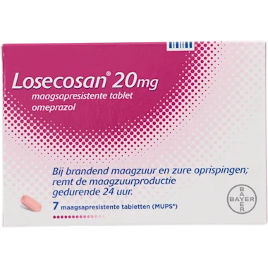 Ingrediënten: Bevat sucrose. Samenstelling: Eén maagsapresistente tablet bevat 20 mg omeprazol.