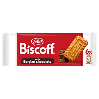 Biscoff speculoos is een uniek koekje: een verrassend knapperige bite en een heerlijke gekarameliseerde smaak. Gecombineerd met overheerlijke Belgische chocolade aan de onderzijde. Per drie verpakt, zodat de smaak en knapperigheid lang behouden blijven. Ideaal voor koffiebars, cafés, tearooms, restaurants, kantines, cateringbedrijven. Ingrediënten van natuurlijke oorsprong zonder conserveringsmiddelen en kunstmatige kleur-, geur- en smaakstoffen. Non GMO en RSPO gecertificeerde palmolie. 100% vegan. Inhoud: 6 verpakkingen met drie koekjes.