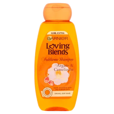 De Loving Blends Argan & Cameliaolie Shampoo van Garnier is speciaal voor droog en dof haar ontwikkeld. De voedende, glansgevende shampoo van 94% natuurlijke oorsprong bestaat uit twee sublieme oliën:
