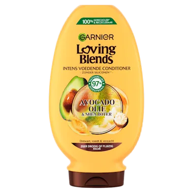 Garnier Loving Blends Avocado Olie & Shea Boter Conditioner ontwart, voedt en verzacht krullen zonder te verzwaren. De iconische formule van Garnier Loving Blends Avocado Olie & Shea Boter Conditioner is speciaal ontwikkeld voor zeer droog, golvend of krullend haar en is nu verrijkt met 10x meer geconcentreerd Avocado Olie*. Het haar is intens gevoed tot wel 4 weken**, zachter, gemakkelijker te stijlen en geschikt voor alle verschillende type krullen (2ABC, 3ABC & 4ABC). De Garnier Loving Blends Avocado Olie & Shea Boter Conditioner bevat Shea Boter van verantwoorde oorsprong en 97% van de ingrediënten van natuurlijke oorsprong. Garnier zet zich in voor Green Beauty. Ontdek voor nog meer verzorging de gehele routine. Garnier zet zich voortdurend in om de ecologische en sociale impact van haar producten te verminderen tijdens hun gehele levenscyclus, dus inclusief gedurende de productie- en gebruiksfase. Daarnaast streven wij ernaar om jou op een transparante manier toegang te geven tot deze gegevens, zodat jij beter geïnformeerde beslissingen kunt maken over welke producten je aanschaft. Daarom heeft Garnier het Product Impact Labelling Systeem geïntroduceerd. Om zo transparant mogelijk te zijn is deze methode ontwikkeld met de hulp van onafhankelijke wetenschappelijke experts en de gegevens zijn gecontroleerd door het onafhankelijke Bureau Veritas.