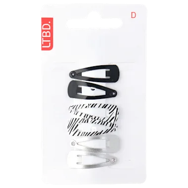 | 6 mini klik-klaks kleurmix | mini-klik-klaks-kleurmix-6stuks-ltbd | Klik-klak haarspeldjes zijn haarknipjes om je kapsel mee op te vrolijken. Ze zijn verkrijgbaar in verschillende kleuren, dus match ze bij je favoriete outfit! De klik-klak haarspeldjes geven niet alleen een leuk effect, ze zijn ook enorm handig om het haar in model te houden. Je zet er eenvoudig losse plukjes mee vast. Zo blijft je haar de hele dag goed zitten! | Set van zes mini klik-klaks van LTBD. Speciaal voor kinderen en verkrijgbaar in verschillende kleuren. |