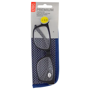 De leesbril bestaat hoofdzakelijk uit de lens, het montuur en de pootjes.