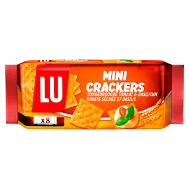Ingrediënten: TARWEBLOEM 93 %, palmolie, zonnebloemolie, zout, tomatenpoeder 1,5 %, zuurteregelaar (natriumcarbonaten), gedroogde tomatenstukjes 0,8 %, GERSTEMOUTMEEL, gedroogde basilicum 0,4 %, gist, ui, suiker. KAN MELK BEVATTEN.