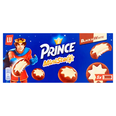 LU Prince MiniStars Black & White zijn krokante ronde chocoladekoekjes met een heerlijke melkvulling. Ze zijn bedekt met witte chocolade in de vorm van een schitterende ster. Evenwichtig tussendoortje en handig om mee te nemen of uit te delen! Sinds 1846 biedt LU kwaliteitskoeken aan voor de hele familie.