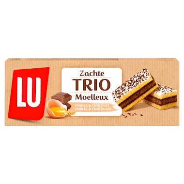 De heerlijk zachte en smeuïge LU Trio Cake is gemaakt met echte boter, duurzame tarwe en vrije-uitloopeieren. Met 3 texturen zorgt dit cakeje voor 3 keer meer plezier! Een feestelijke cake met vanilleglazuur en chocoladesmaak, bedekt met knapperige hagelslag om echt mee uit te pakken! Sinds 1846 biedt LU kwaliteitskoeken aan voor de hele familie. Laat je verleiden door onze malse cakejes en wafels, gemaakt van zacht biscuitgebak in heerlijke smaken.