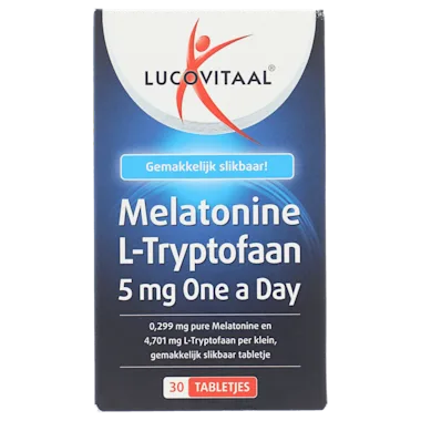 Ingrediënten: Vulmiddel (Microkristallijne Cellulose), L-Tryptofaan, Antiklontermiddelen (Colloïdale Siliciumdioxide, Magnesiumzouten van vetzuren), Melatonine.