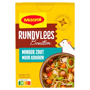 Een verpakking Maggi bouillonblokjes is goed voor 8 liter bouillon