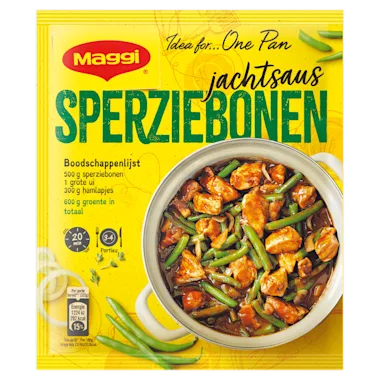 MAGGI sperziebonen jachtsaus kruidenmix voor een lekker eenpansgerecht.