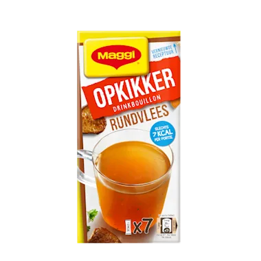 Ingrediënten: zout, glucosestroop, gistextract, mineraalzout (kalium), aroma's, suiker, gekarameliseerde suiker, rundvleespoeder 1,9%, wortelen 0,8%, palmolie, peterselie, voedingszuur (citroenzuur), uien 0,2%, antioxidant (rozemarijnextract). Bevat mogelijk: SELDERIJ, GLUTEN, EI, MELK.