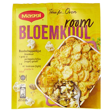 Met de Maggi ovenschotel bloemkool room kruidenmix zet je gemakkelijk een heerlijke ovenschotel op tafel, boordevol groenten. Doe alle verschillende ingrediënten in een ovenschaal en zet deze vervolgens in de oven. Naast een bloemkool ovenschotel is dit product ook erg geschikt voor het maken van een ovenschotel pasta met gehakt. Variatietip: Vervang de bloemkool eens voor broccoli of het gehakt voor kipfilet. Maggi heeft al sinds de oprichting in 1872 door Julius Maggi de missie om mensen voedsel met hoge voedingswaarden te bieden met een snelle bereidingstijd. Maggi is van oudsher bekend van het bedenken van innovatieve smaakmakers, waaronder de legendarische Maggi Aroma in het iconische Maggi flesje en de bouillonblokjes. Een ovenschotel bloemkool room is geschikt voor 3 tot 4 personen.