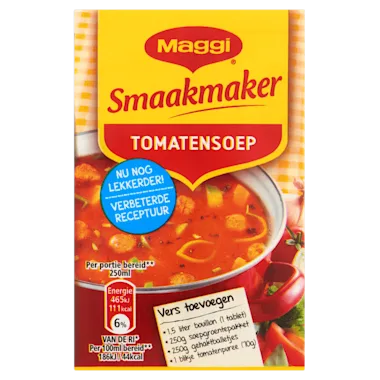 Met MAGGI Smaakmaker tomatensoep voeg je gemakkelijk extra smaak toe aan jou maaltijdsoep.